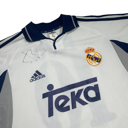 Camiseta de fútbol Adidas Real Madrid CF temporada 2000-2001 home kit dorsal 10 y firmada por Luis Figo - L